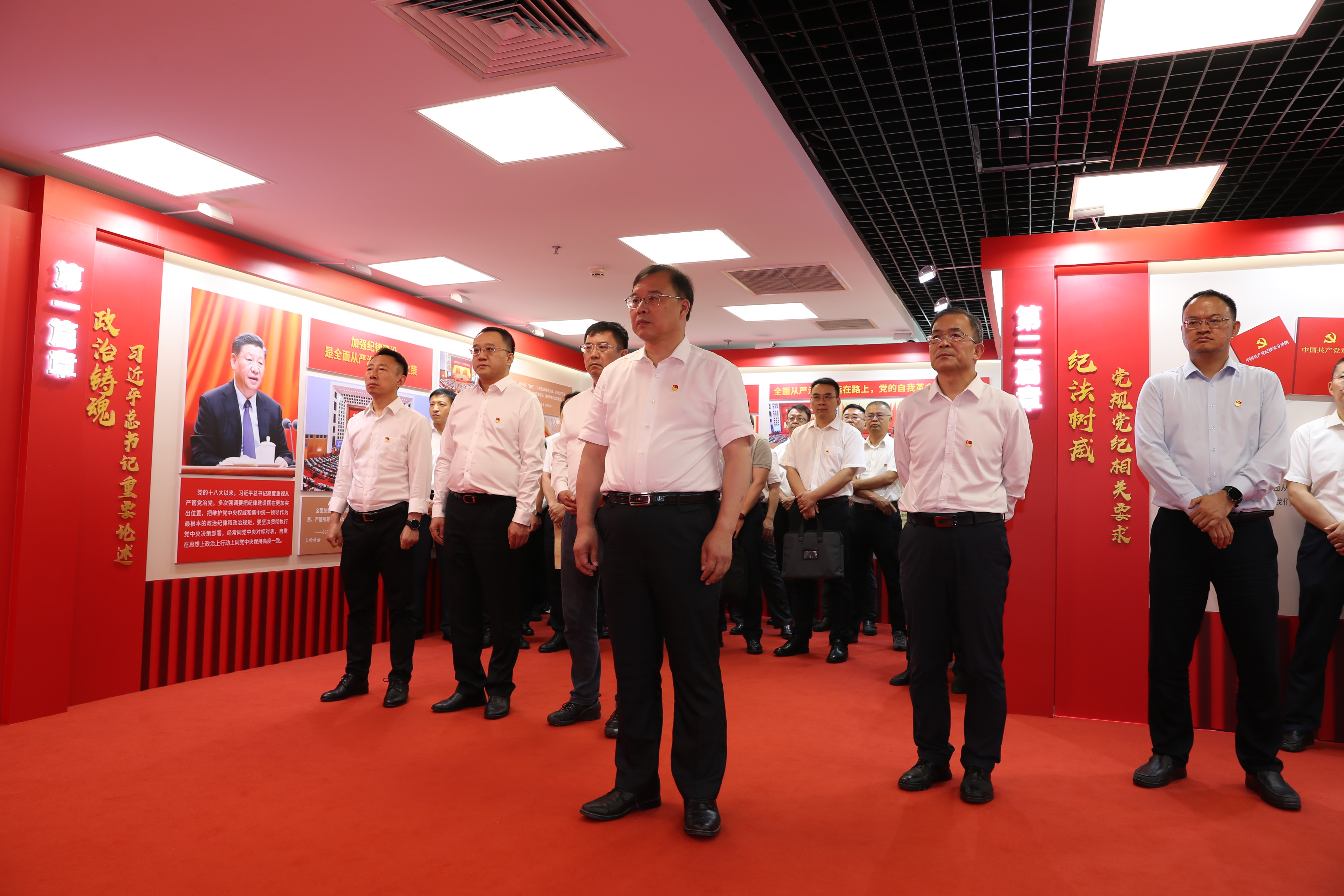 參觀過程中,大家不時(shí)駐足觀看,認(rèn)真聆聽講解,系統(tǒng)學(xué)習(xí)黨規(guī)黨紀(jì)有關(guān)要求,進(jìn)一步加深對(duì)全面從嚴(yán)治黨、黨的紀(jì)律建設(shè)永遠(yuǎn)在路上的理解和把握。