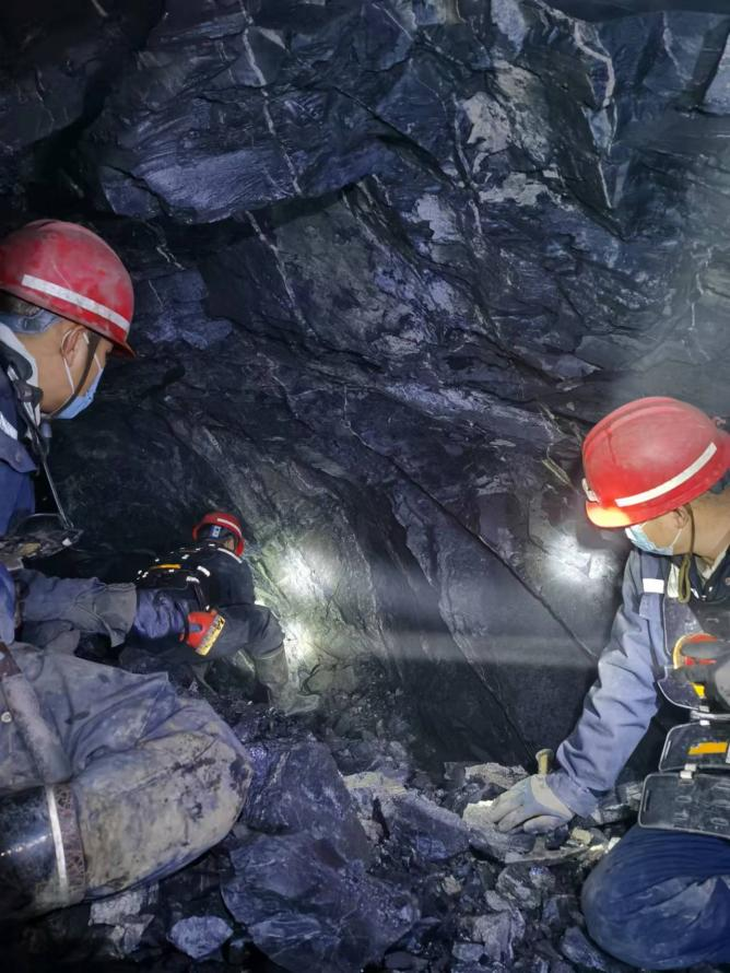 ?????????????????????????????圖丨赤峰大井子礦業(yè)二采區(qū)技術(shù)室地測組成員現(xiàn)場勘查揭露礦體具體狀態(tài)數(shù)據(jù)