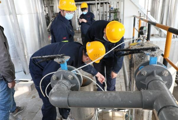 圖丨中色鋅業(yè)“推進環(huán)保治理”青年突擊隊隊員協(xié)同配合、研究技術(shù)問題