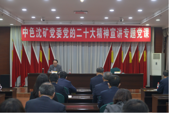 11月17日,按照集團公司黨委統一部署,中國有色集團出資企業沈陽礦業投資有限公司(簡稱:中色沈礦)黨委召開黨的二十大精神宣講專題黨課會議,中色沈礦黨委書記、董事長王鎖寬以《以二十大精神為行動綱領 、推動沈礦綠色高質量發展,凝心聚力在新征程中展現新擔當貢獻新力量》為題,為全級次廣大黨員干部講授專題黨課,宣貫黨的二十大精神,對走好走穩中色沈礦綠色高質量發展之路作出部署,并就學習落實好二十大精神提出要求。
