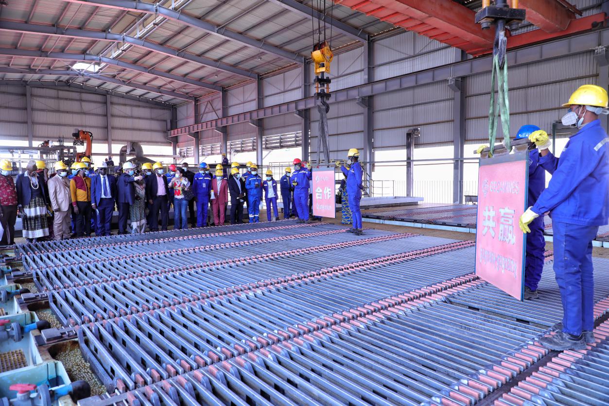 剛波夫公司濕法廠電積車間陰極銅剝片作業(yè)