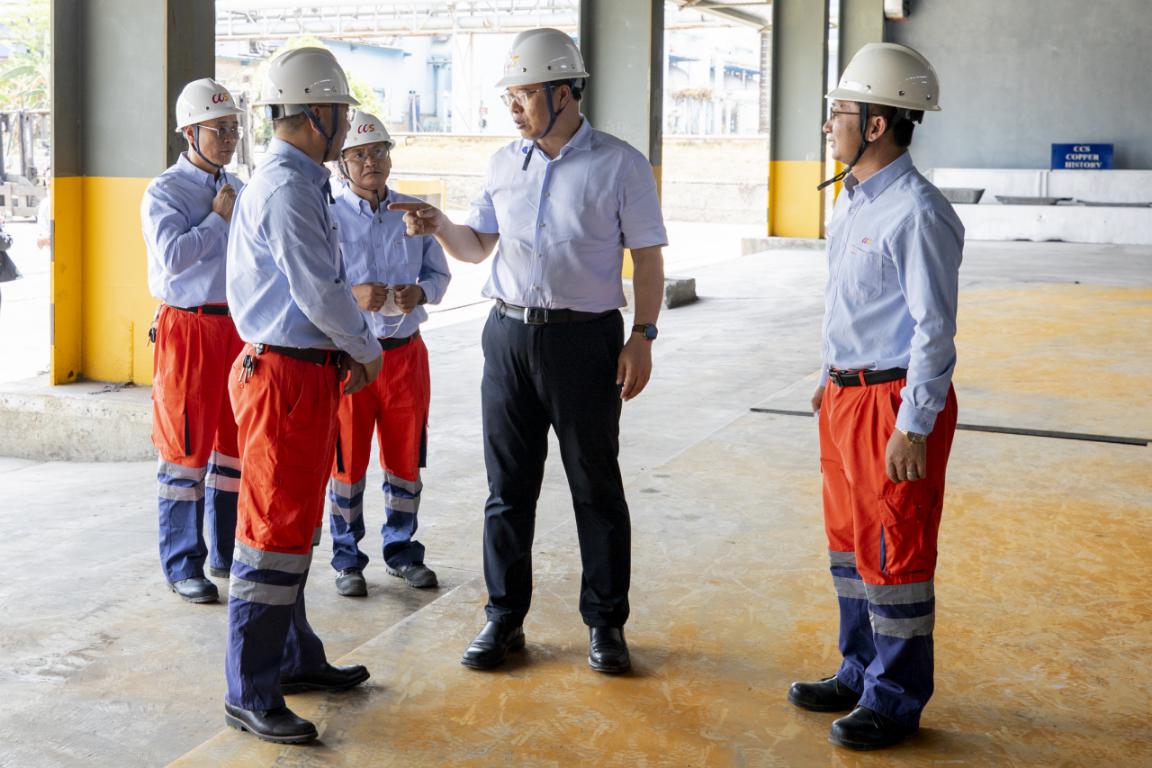 在謙比希銅冶煉,奚正平董事長(zhǎng)一行參觀公司展廳、辦公區(qū),現(xiàn)場(chǎng)調(diào)研熔煉分廠轉(zhuǎn)爐渣臨時(shí)存放點(diǎn)、銅產(chǎn)品堆場(chǎng)和3號(hào)陽(yáng)極爐,邊調(diào)研、邊提問(wèn)、邊指導(dǎo),就公司如何踐行“1+4”發(fā)展戰(zhàn)略提出了具體工作意見(jiàn)。