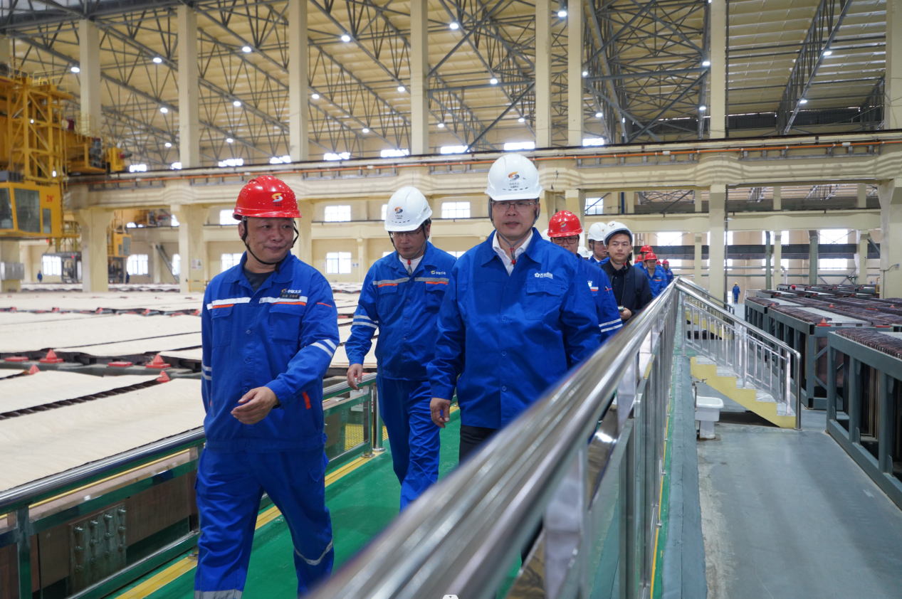 圖丨奚正平董事長參觀中色大冶弘盛銅業電解片區