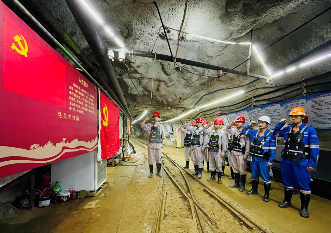 中色平桂組織黨員在井下重溫入黨誓詞,激勵(lì)廣大黨員傳承紅色基因,錘煉黨性修養(yǎng),激發(fā)工作熱情。
