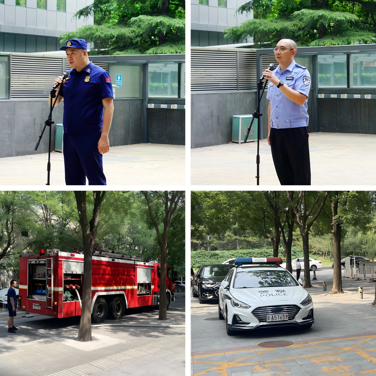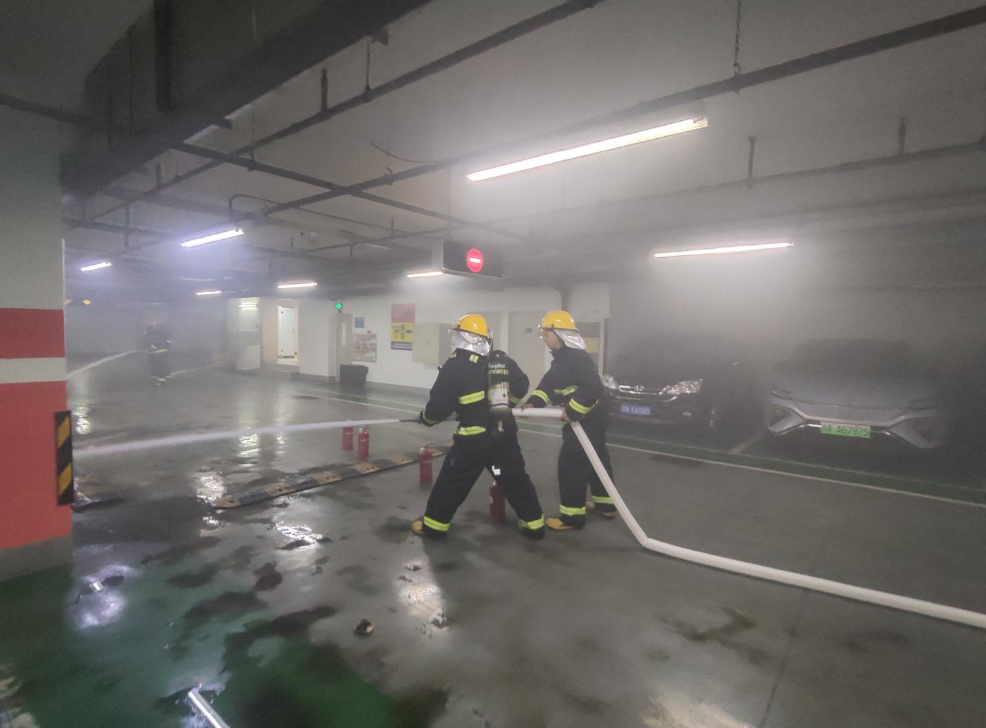 本次演練緊扣“人人講安全、個個會應(yīng)急--查找身邊安全隱患”“安全生產(chǎn)月”活動主題,模擬大廈地下車庫充電車輛起火場景。中控室值班員接警確認后,迅速上報物業(yè)應(yīng)急指揮中心;應(yīng)急總指揮研判火情后啟動全樓疏散應(yīng)急預(yù)案并報火警,與亞運村消防中隊和派出所聯(lián)動;現(xiàn)場撲救組攜裝備率先處置,后續(xù)與消防隊員協(xié)同滅火;疏散引導(dǎo)組指引人員沿防火通道撤離,醫(yī)療救援組及時轉(zhuǎn)移 “傷員”;設(shè)備保障組維持水電消防設(shè)備運行,外圍警戒組配合派出所干警維護現(xiàn)場秩序。在各小組緊密配合下,用時約6分鐘完成樓內(nèi)人員撤離。后續(xù)通過持續(xù)撲救,火勢得到有效控制并最終撲滅,圓滿完成各項演練目標。