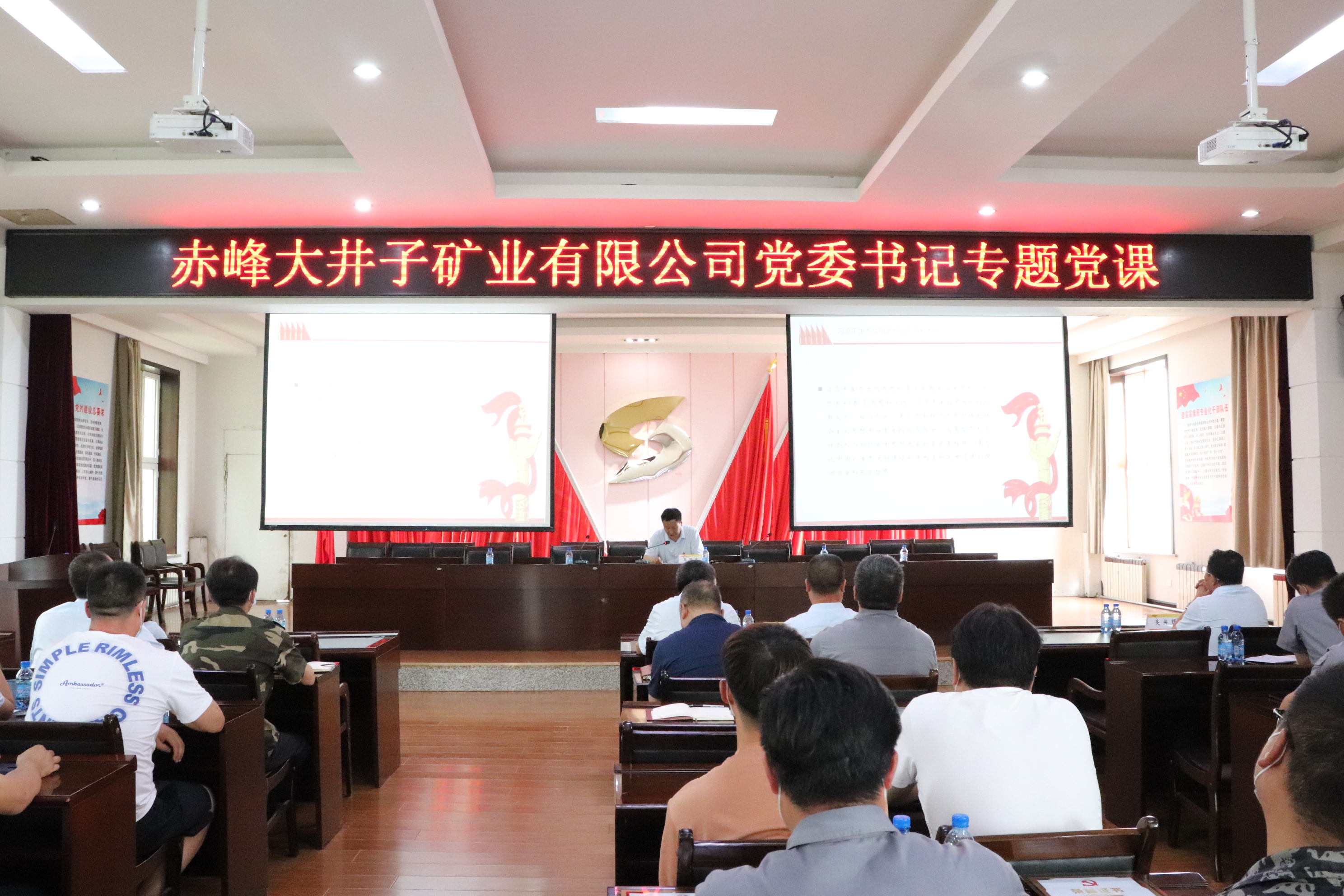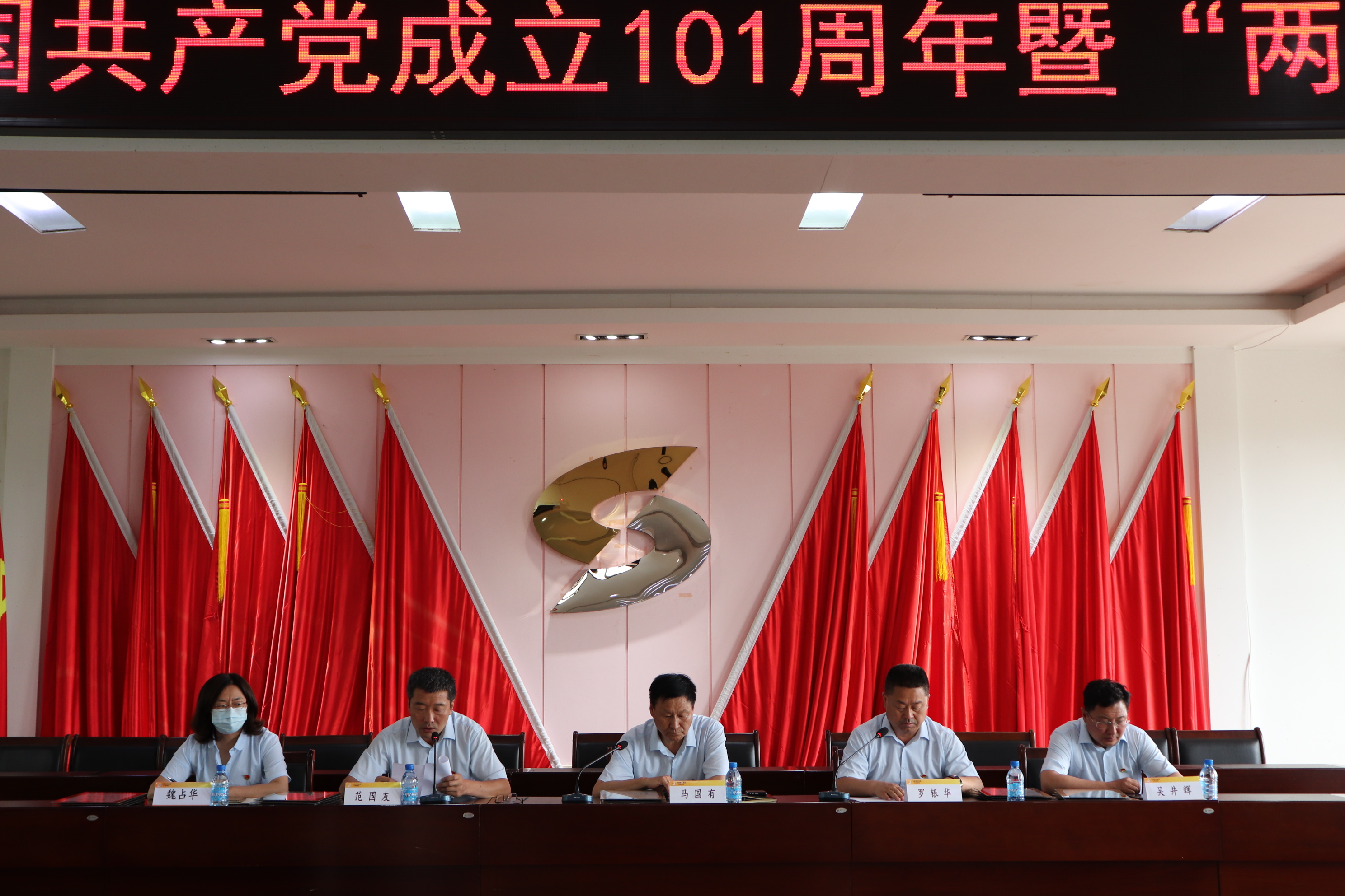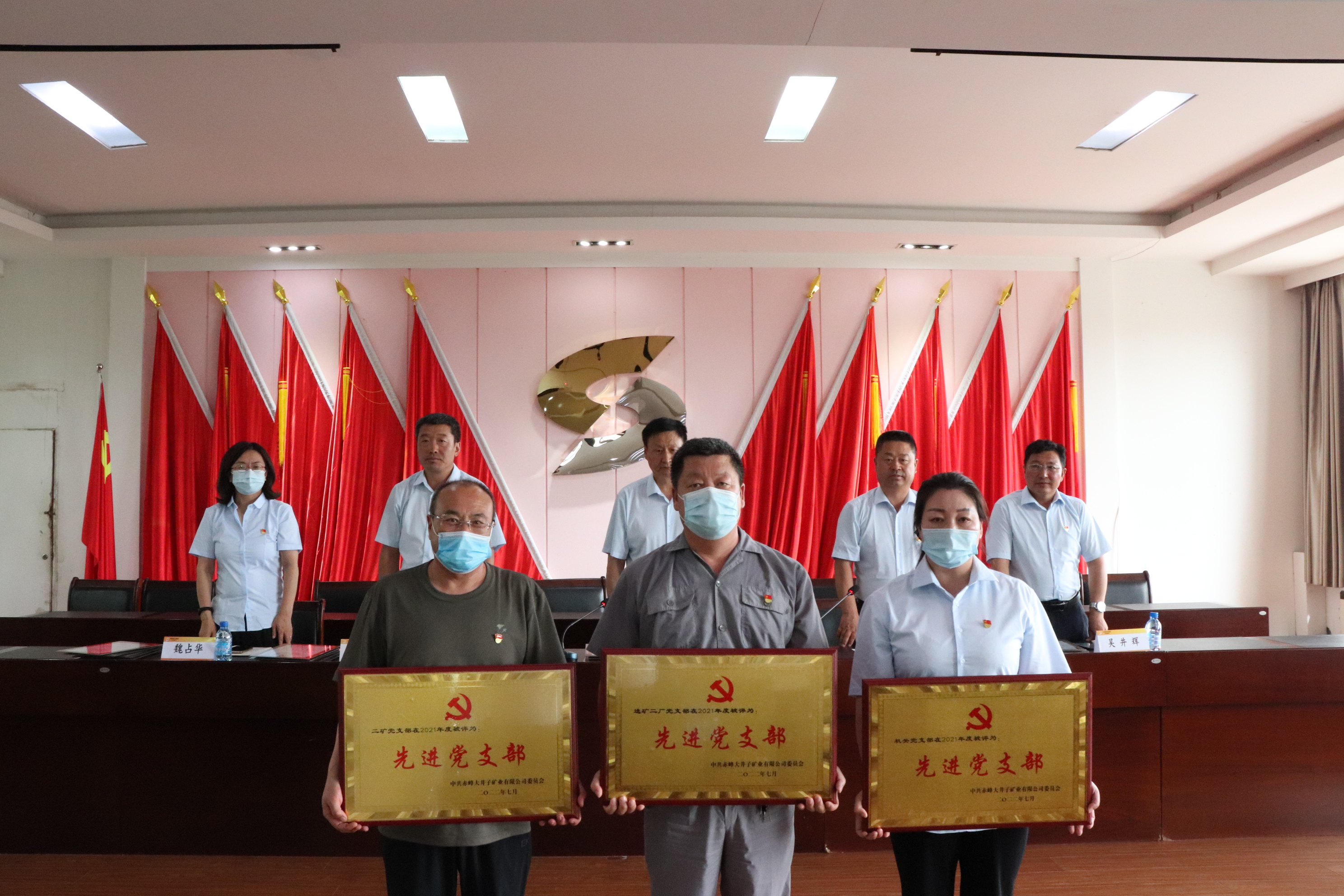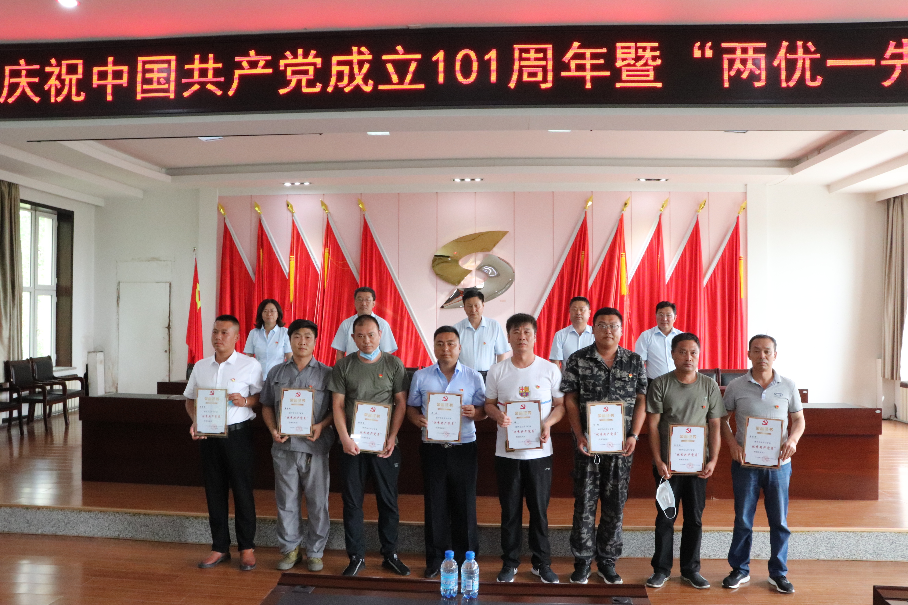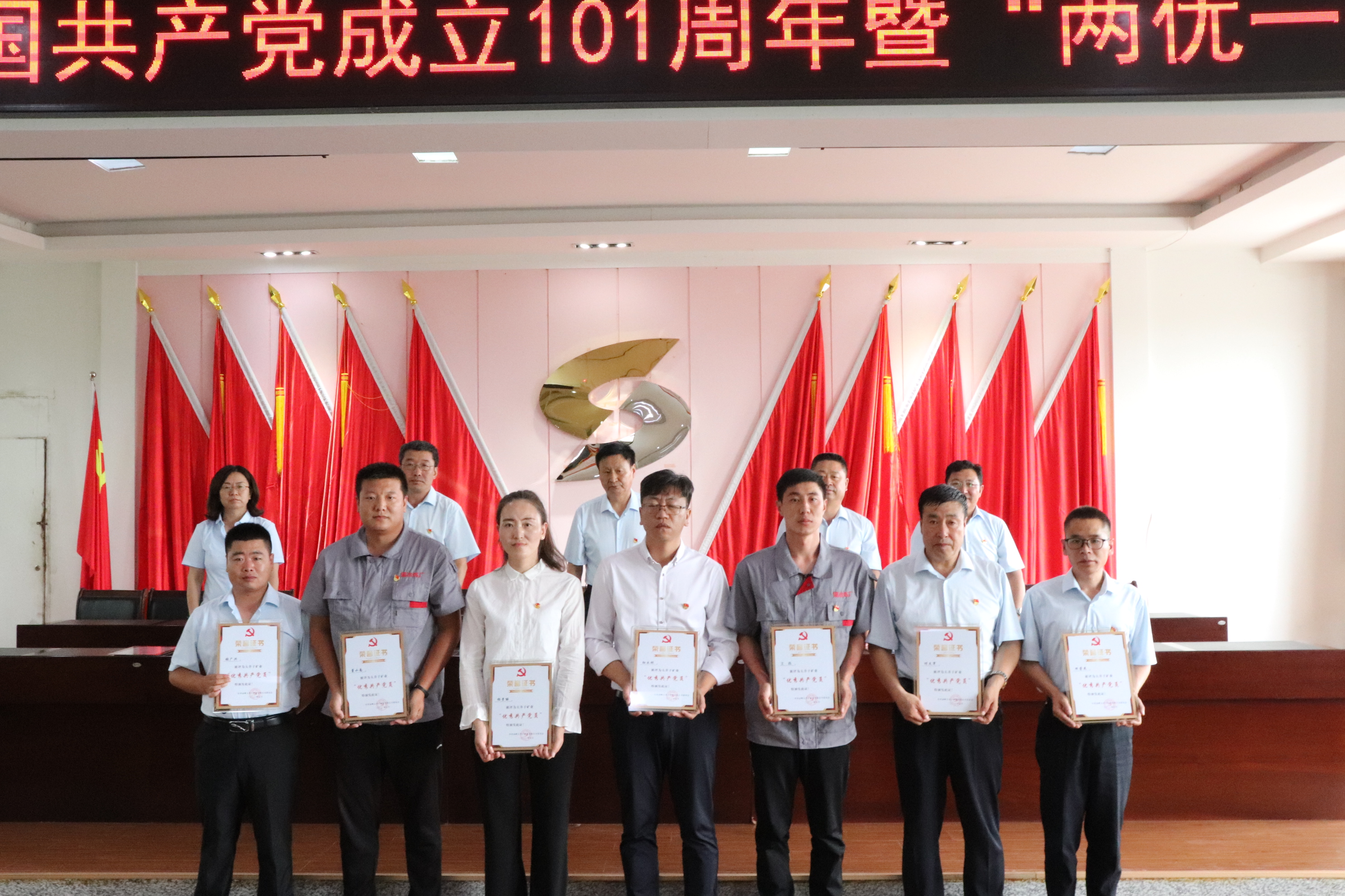 為熱烈慶祝中國共產黨成立101周年,凝聚全體黨員奮進新征程、建功新時代的磅礴力量,7月28日,赤峰大井子礦業有限公司黨委隆重舉行慶祝中國共產黨成立101周年暨“兩優一先”表彰大會。會議由公司副總經理羅銀華主持,公司班子成員、各單位、各部門黨政負責人、轉正黨員和新接收預備黨員及各單位團干部、團員代表參加了會議。