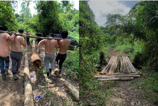 “這算啥?走起!”二話不說,大家紛紛跳出車輛操起砍刀,高呼著往林子里殺去,不一會兒一座由20根大木頭組成的“大橋”便被建造出來。