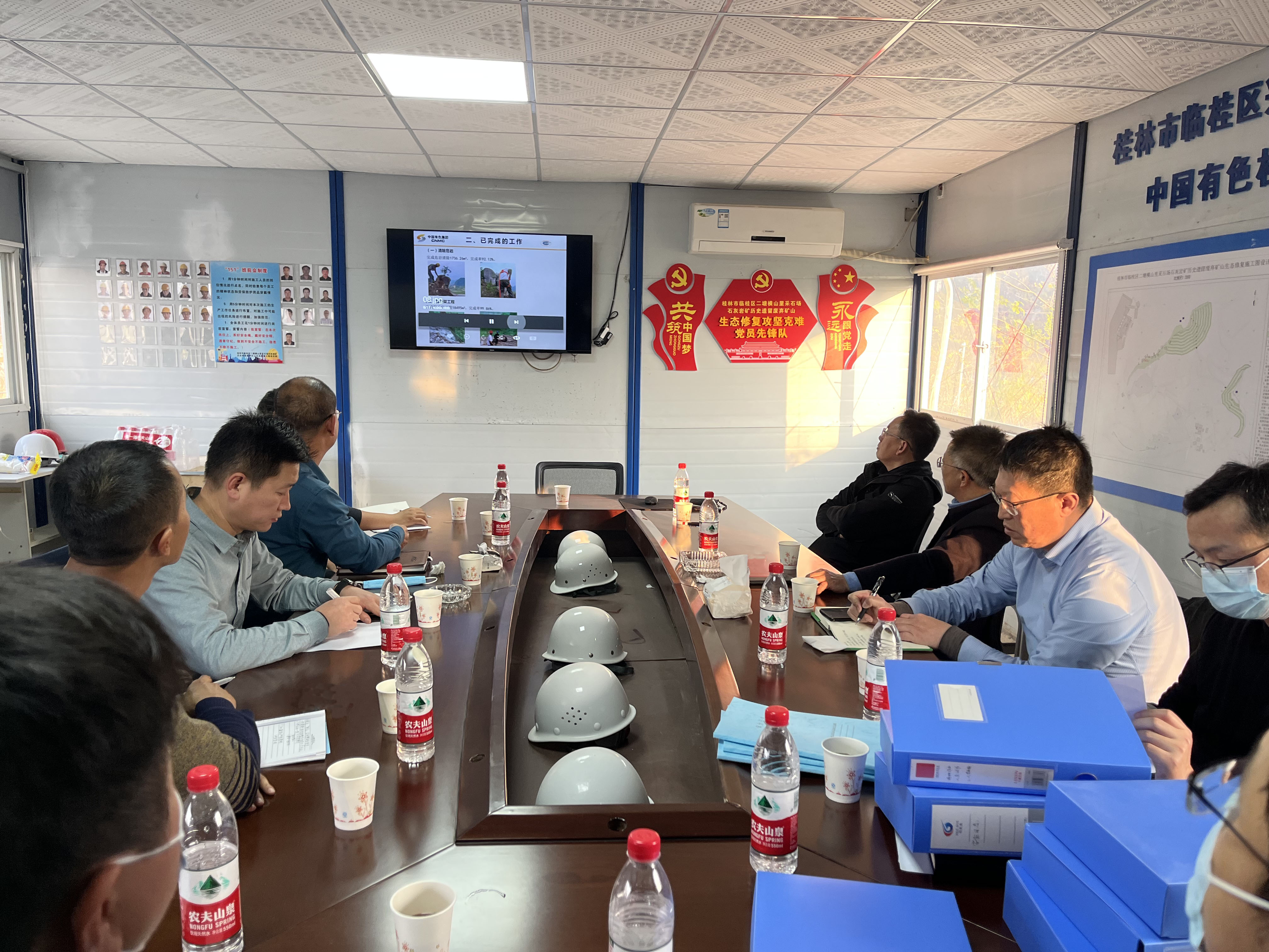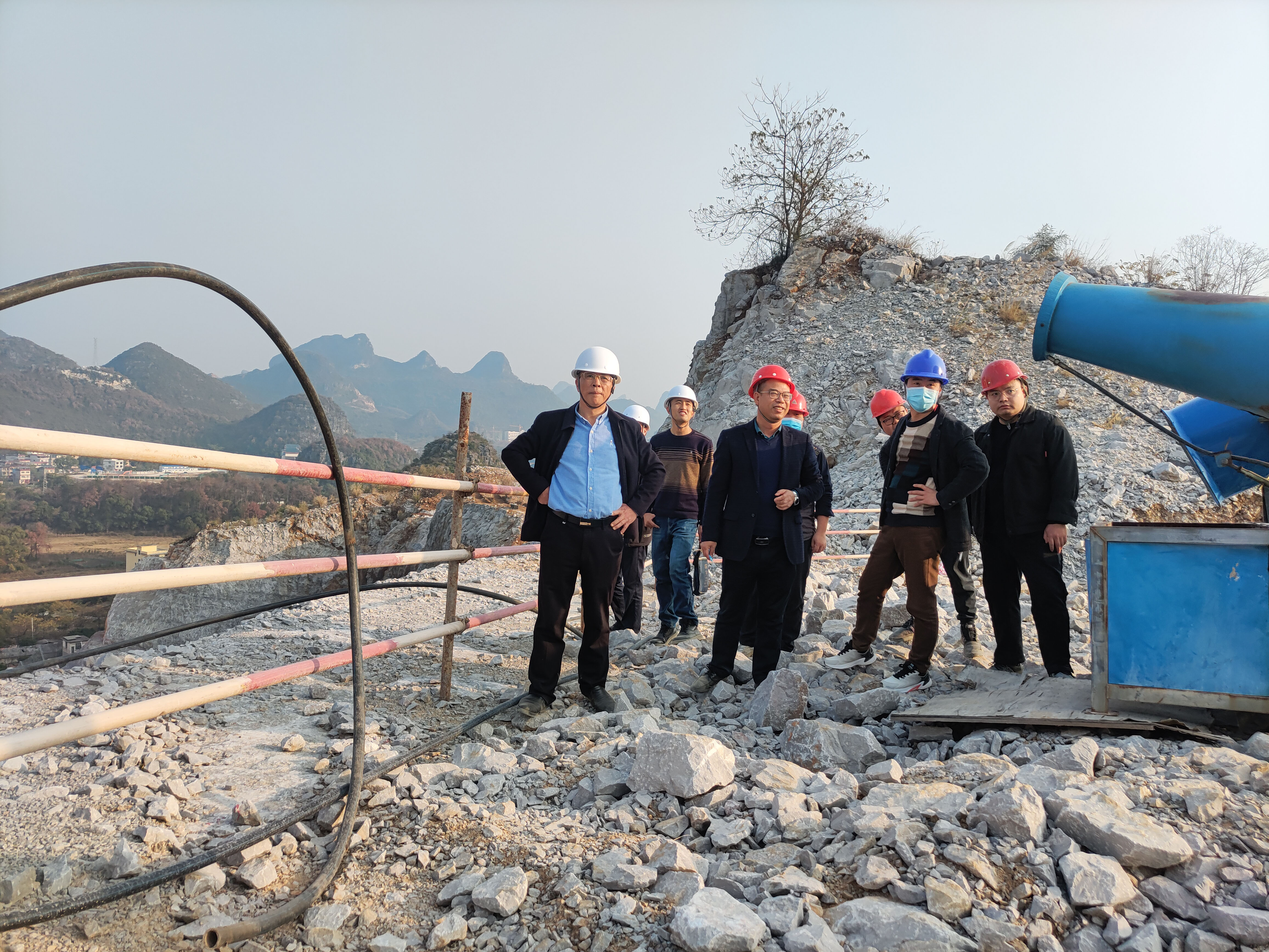 1月6日下午,中色桂林院黨委副書記、總經(jīng)理楊國高前往博泰環(huán)保研究所負(fù)責(zé)的“臨桂區(qū)二塘橫山里采石場石灰?guī)r礦歷史遺留廢棄礦山生態(tài)修復(fù)工程”項目現(xiàn)場檢查指導(dǎo)安全生產(chǎn)工作,副總經(jīng)理張向軍,企業(yè)發(fā)展部負(fù)責(zé)人及安全管理人員、博泰環(huán)保研究所負(fù)責(zé)人及項目組相關(guān)人員陪同檢查。