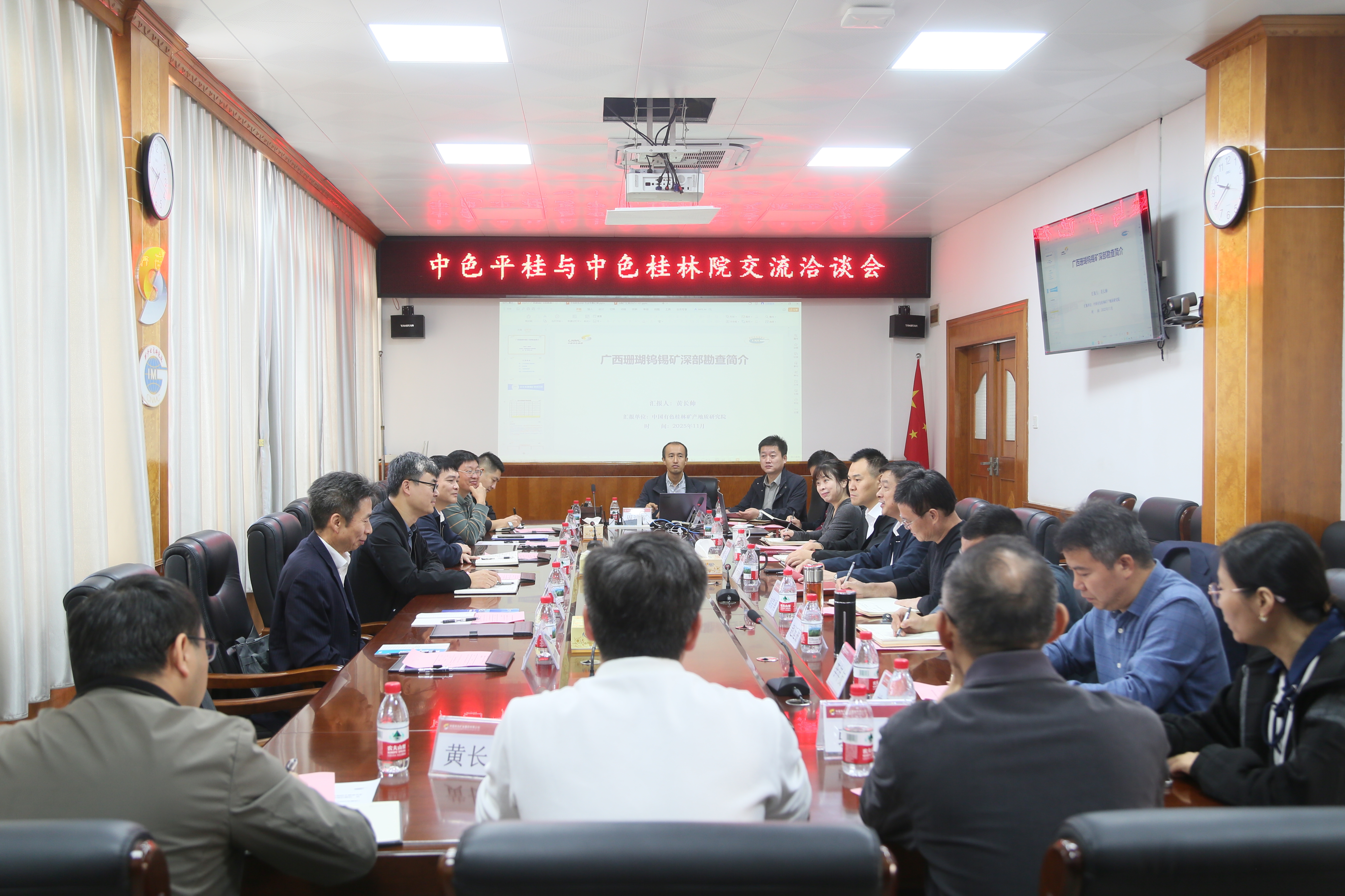 中色平桂黨委委員、總會計師李文華,中色平桂有關負責同志;中色桂林院在桂全體班子成員,總部相關部門和所屬單位有關負責同志參加工作會談。