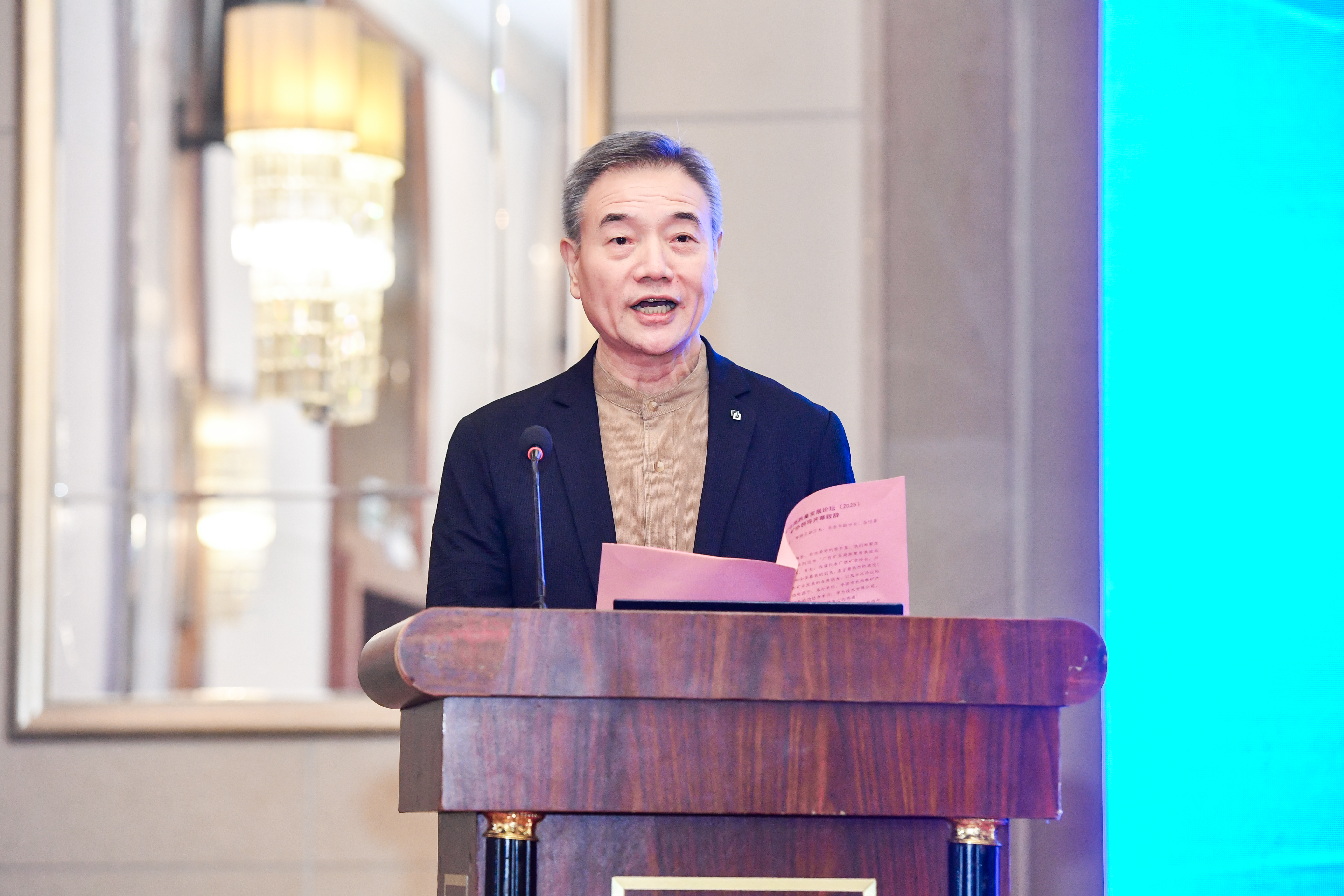 龍杏華在致辭中介紹了桂林市礦業發展情況。他表示,桂林17種礦產儲量居廣西前列,鋁、錳等戰略性礦產潛力大。近年桂林以打造世界級旅游城市為統攬,推進找礦突破行動,預計提交 3 處大中型礦產地,2025年底采礦權達247個、居廣西第三,同時推動AI、智能鉆探等技術與礦業融合,構建“科研—勘查—產業”一體化格局。