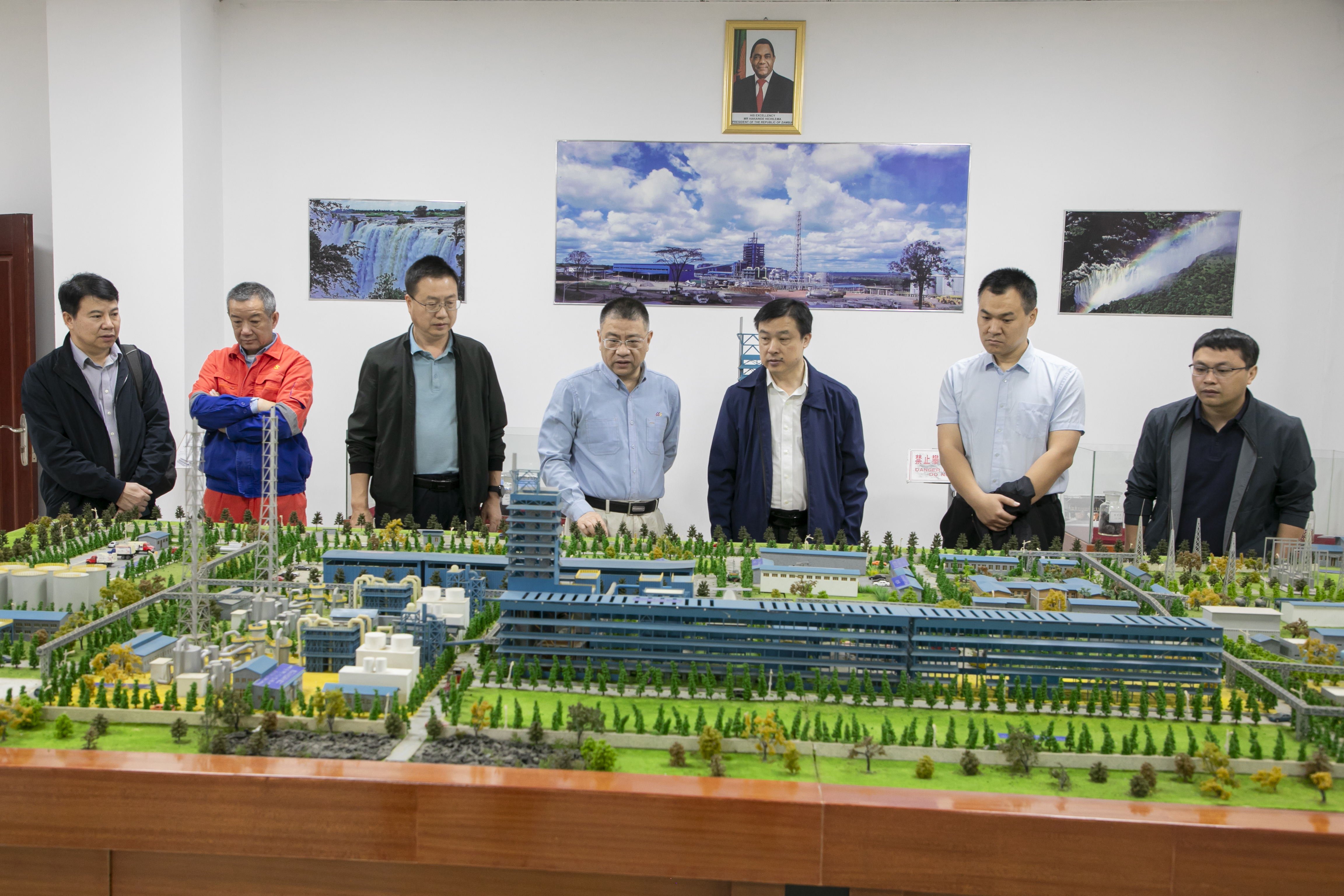 在謙比希銅冶煉,盧宗柳一行參觀了銅冶煉廠區沙盤及生產車間,與王闐董事長在資源增儲、科技創新方面進行討論并形成共識,為下一步深化合作夯實了基礎。