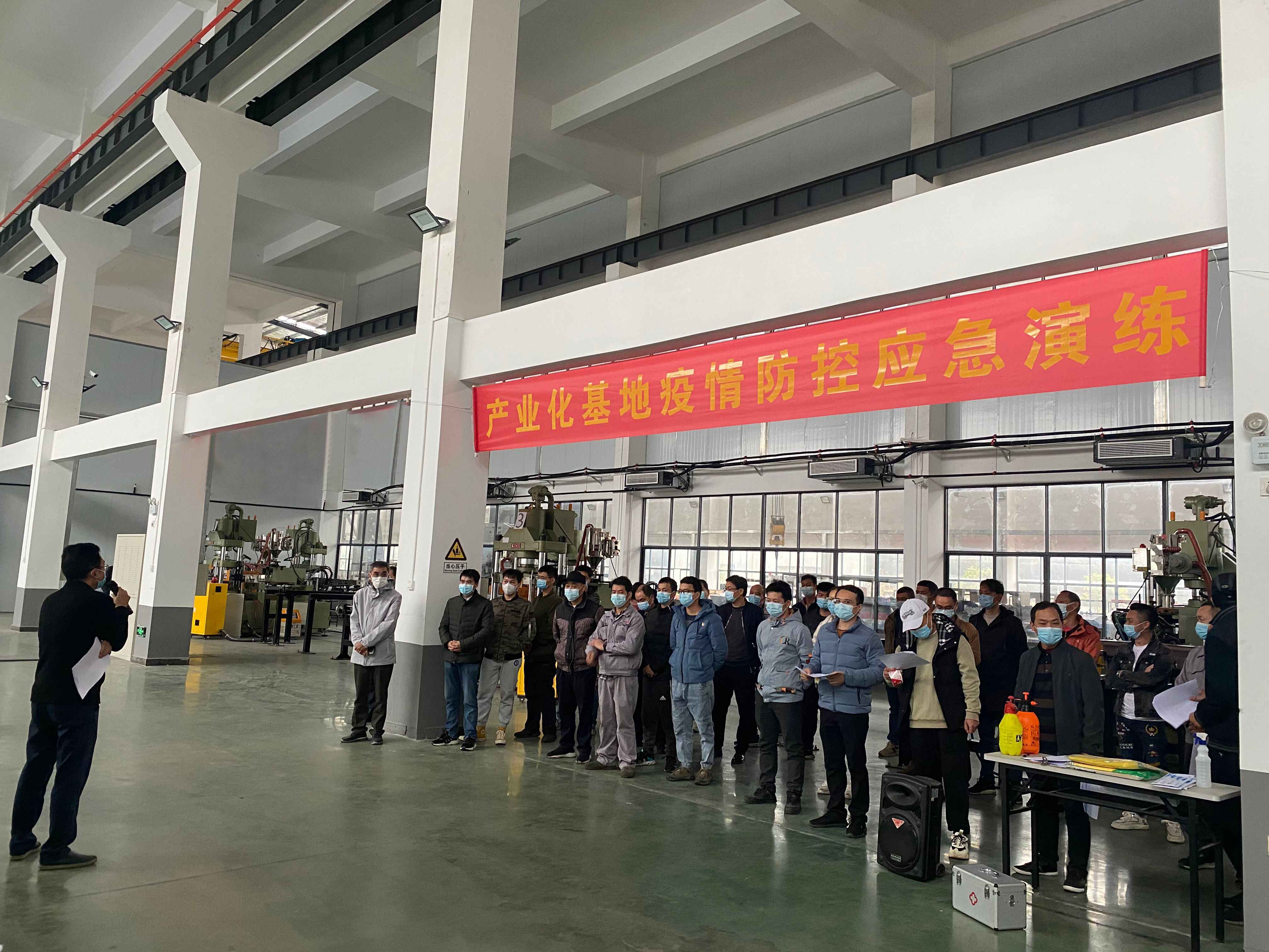 ????疫情演練以公司注塑車間發現一名員工有咳嗽發熱癥狀為例,期間健康碼由綠色變黃色為模擬場景。通過模擬真實場景,全面展示疫情發現與報告、啟動應急響應、流行病學調查、密接者排查、病例轉運等應急處置環節。演練過程緊張有序,參與演練的各成員單位分工明確、各司其職,協同合作、處置得當,科學、規范、有效地落實了疫情防控各項措施。