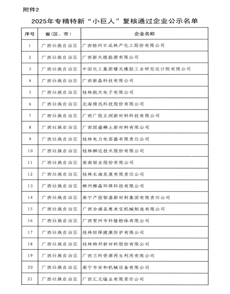 (特邦新材王智龍訊 )2025年10月,廣西壯族自治區工業和信息化廳公示了2025年專精特新“小巨人”復核通過企業的名單,特邦新材憑借其卓越的科研創新能力、精細化的管理和在國內外細分市場的領先地位,從一眾企業中脫穎而出,成功通過復核。這一重大榮譽的延續不僅標志著特邦新材在專業化、精細化、特色化、新穎化道路上取得了顯著成就,也彰顯了其在推動超硬材料工具行業經濟高質量發展中的重要作用。