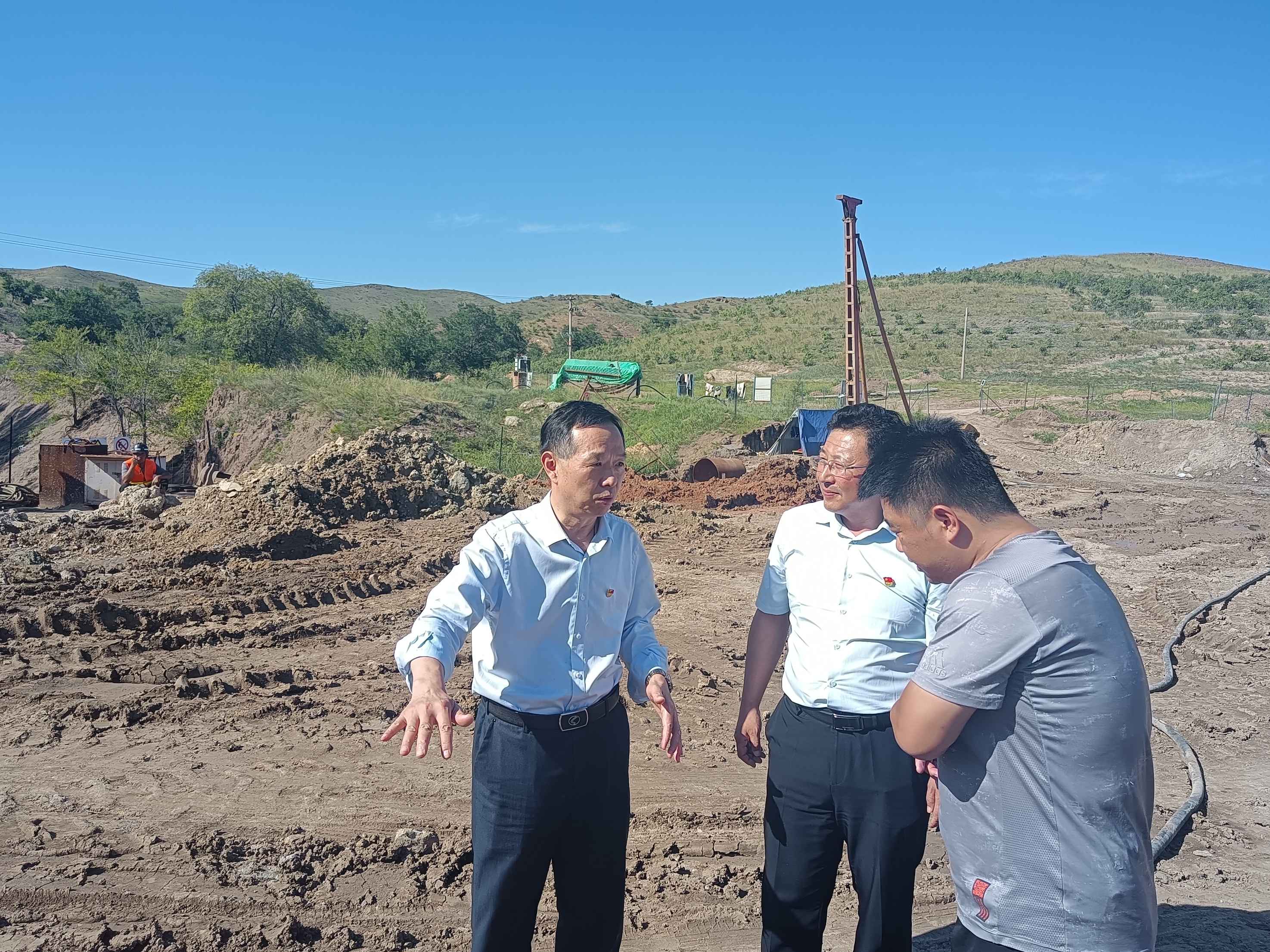 張有志書記在大井子礦業(yè)尾礦庫截滲墻施工現(xiàn)場調(diào)研